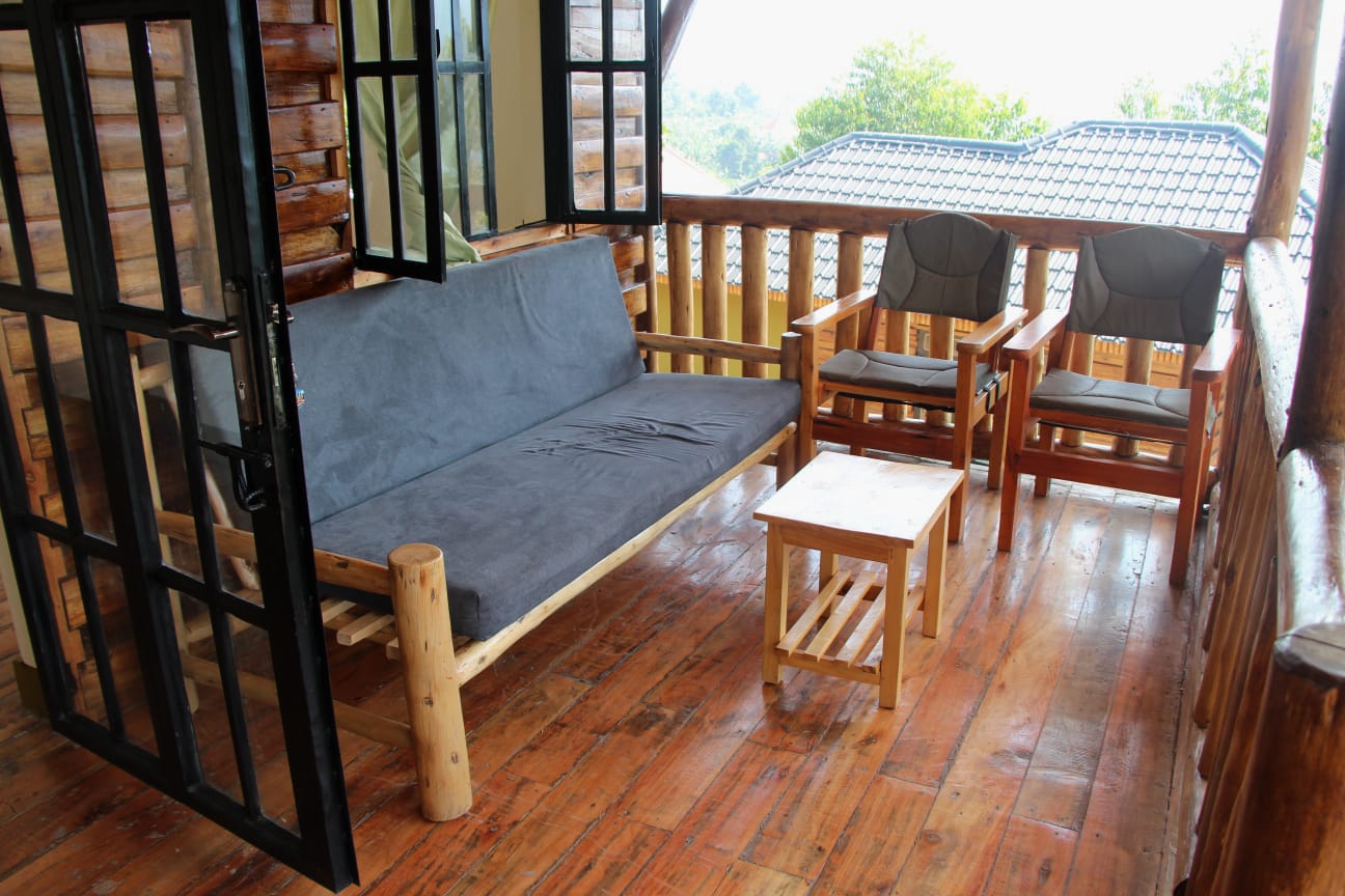 Gorilla Bluff Lodge features a mix of standard rooms and a self-contained banda, accommodating up to nine guests. Each unit is thoughtfully designed with en-suite bathrooms, hot showers, slippers, bathrobes, and private balconies that overlook the lush forest. Whether you’re traveling solo or with family, the lodge offers flexible rooming options including singles, doubles, twins, and triples.